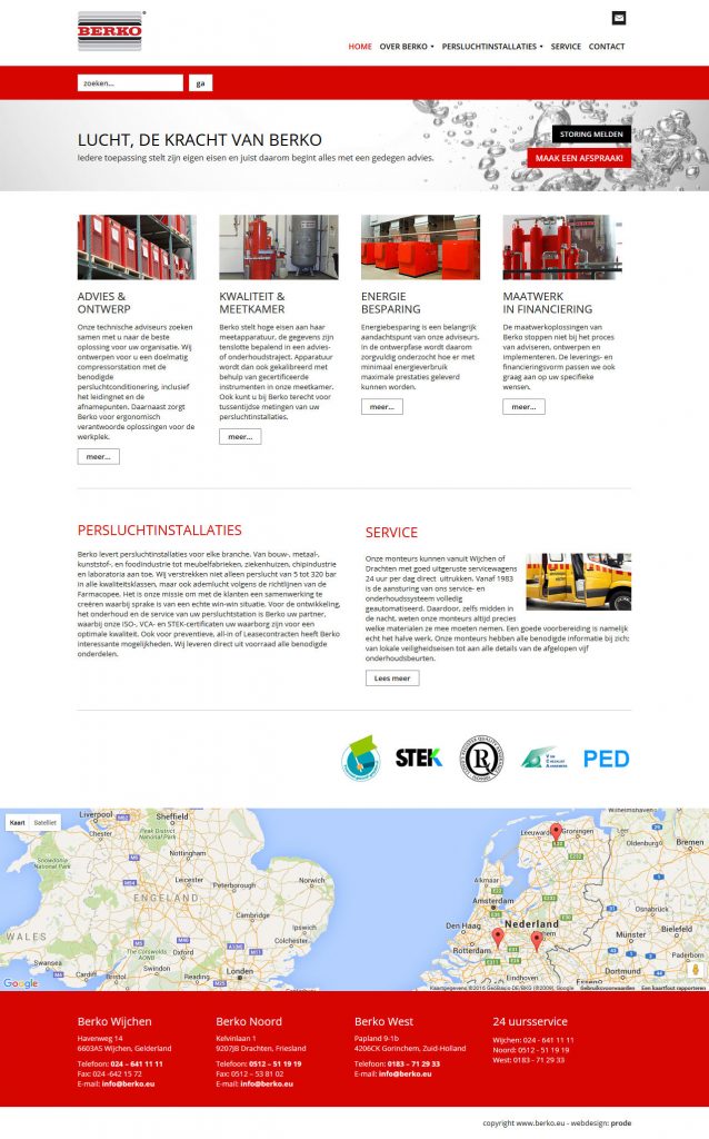 Berko Kompressoren levert persluchtinstallaties voor elke branche. Van bouw-, metaal-, kunststof-, en foodindustrie tot meubelfabrieken, ziekenhuizen, chipindustrie en laboratoria aan toe. Hun service afdeling is 24 uur per dag bereikbaar. Naast de persluchtinstallaties besteedt Berko erg veel aandacht aan opleiding en training. Ook willen zij techniek aan de jeugd over brengen waardoor zij actief bezig zijn kinderen in techniek geïnteresseerd te krijgen en houden.