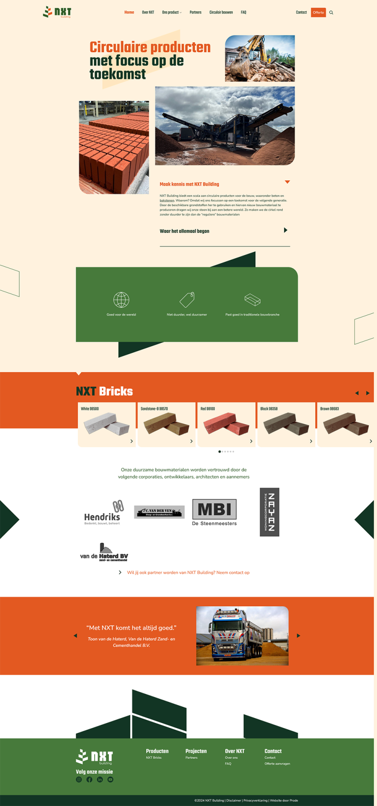 Een nieuw product op de markt brengen is een grote uitdaging op communicatief gebied. Onze collega Ingrid (van CommunicatieKrachten) heeft als uitdaging om samen met de eigenaars een goede basis neer te zetten. Er is een logo en huisstijl gemaakt door onze collega’s van Campaign Company. Op basis van de huisstijl is er ook een ontwerp voor de website gemaakt en deze zijn wij gaan bouwen. De website heeft een jeugdig en professioneel uiterlijk gekregen. Bij het ontwerpen en bouwen is rekening gehouden met uitbreiding voor nog te ontwikkelen producten in de toekomst. We hebben een product blok gebouwd waarin de informatie opgeroepen wordt van het betreffende product. De teksten zijn door de klant aangeleverd en door ons geredigeerd. Tijdens het bouw- en vulproces hebben we animaties aan diverse onderdelen van de website toegevoegd, om de website wat dynamischer te maken. We kijken ernaar uit om in de toekomst nog meer mooie circulaire producten te mogen toevoegen aan de website van NXT Building.